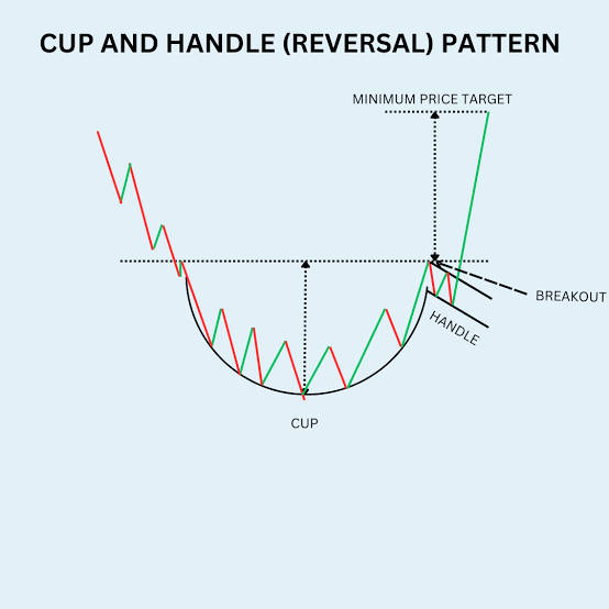 - Price Target: The potential price target can be estimated by measuring the depth of the cup from the bottom to the top and adding this distance to the breakout point of the handle.