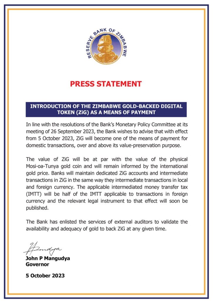 - Backed by Reserves: The ZiG is backed by a composite basket of reserves held by the Reserve Bank of Zimbabwe, which includes foreign currencies and precious metals, primarily gold. The RBZ has stated that the ZiG is fully backed by these reserves.